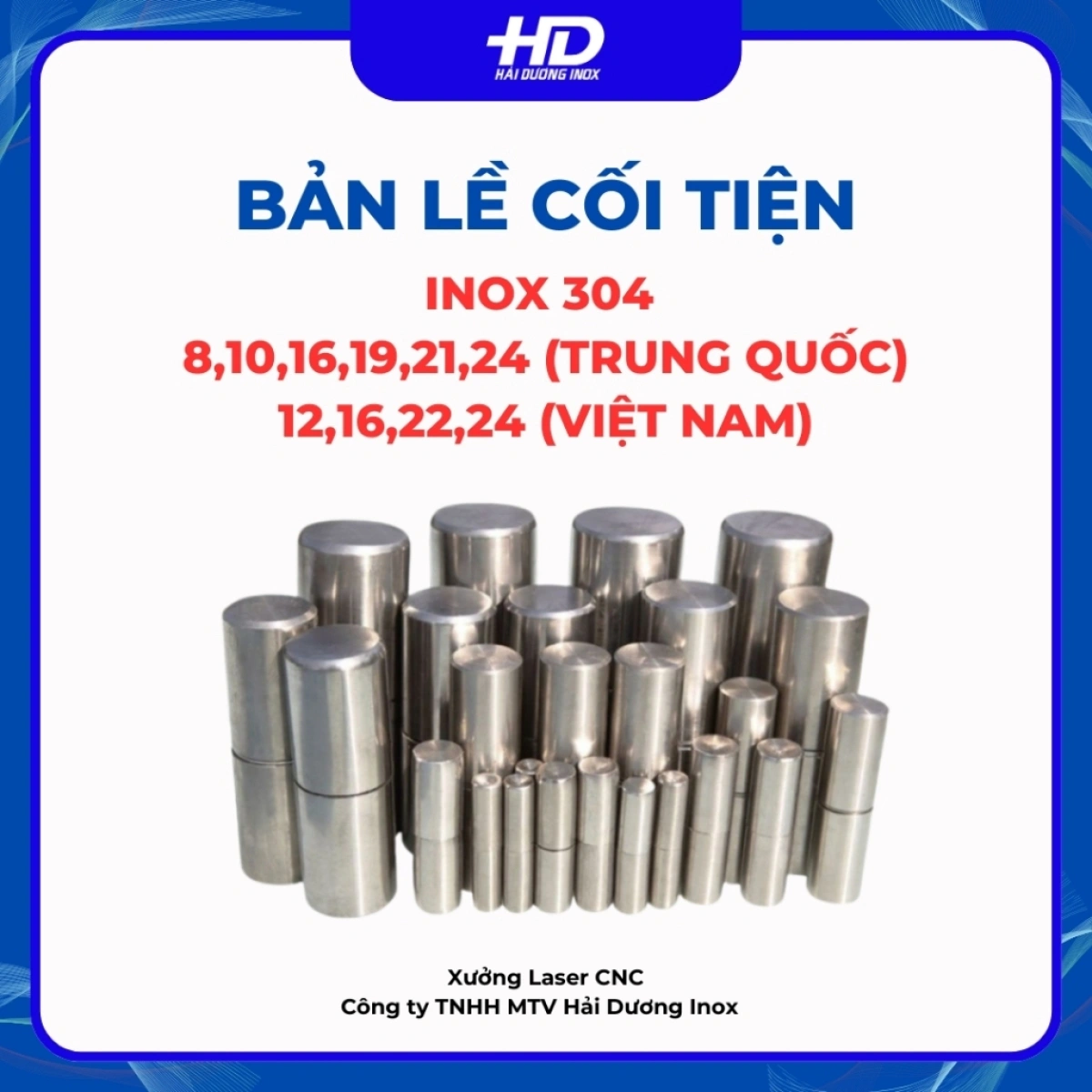 Bản lề cối tiện inox 304, kích thước D8-D10-D16-D19-D21-D24 Trung Quốc, D12-D16-D22-D24 Việt Nam