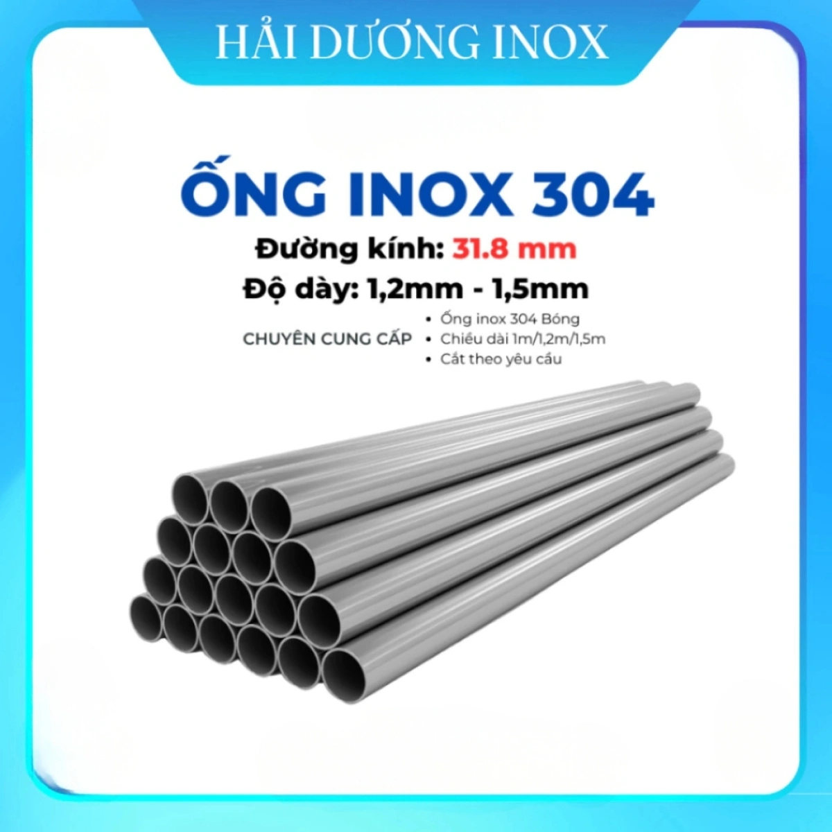 Ống Inox Tròn 304 phi 31.8 mm, Độ dày 1,2 mm/1,5mm, chiều dài 1m/1m2/1m5, hàng bóng, đẹp, chất lượng